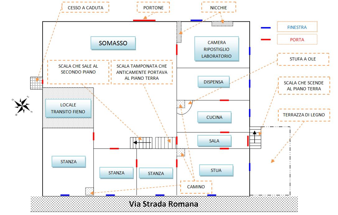 Al primo piano si poteva accedere dal portone posto sul lato est, oppure dalla