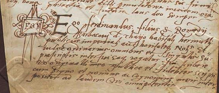 "Antonio fillio odorici fillii dicti duce de ermulo" come appare nel documento redatto a Taio il 18 maggio1437. (Arch. Castel Bragher) |
