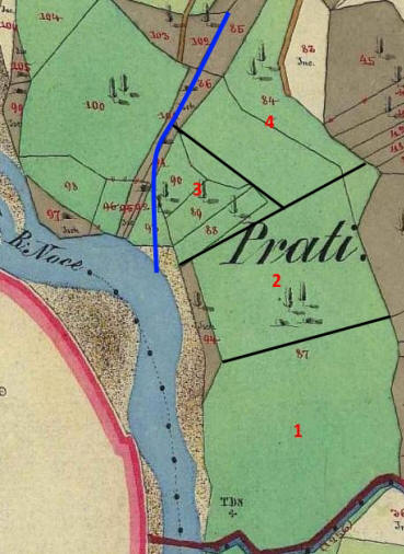 Giuseppe possedeva una parte di questo terreno e anche le p.f. 99, 100 e 101 che nel